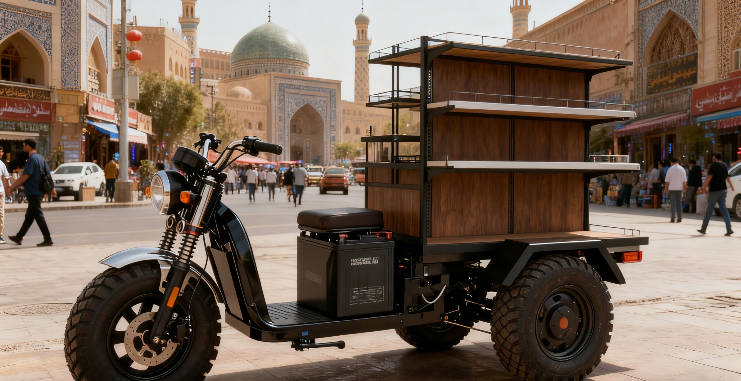 Defining the “Silk Road E-Cart”: In collaboration with Timur, we designed a modular platform. The core would be a heavy-duty electric tricycle chassis with a long-range battery. The back would feature a universal mounting system for interchangeable modules: a “Barista Module” with a secure mount for a coffee machine and power outlets, and a “Retail Module” with adjustable shelving.